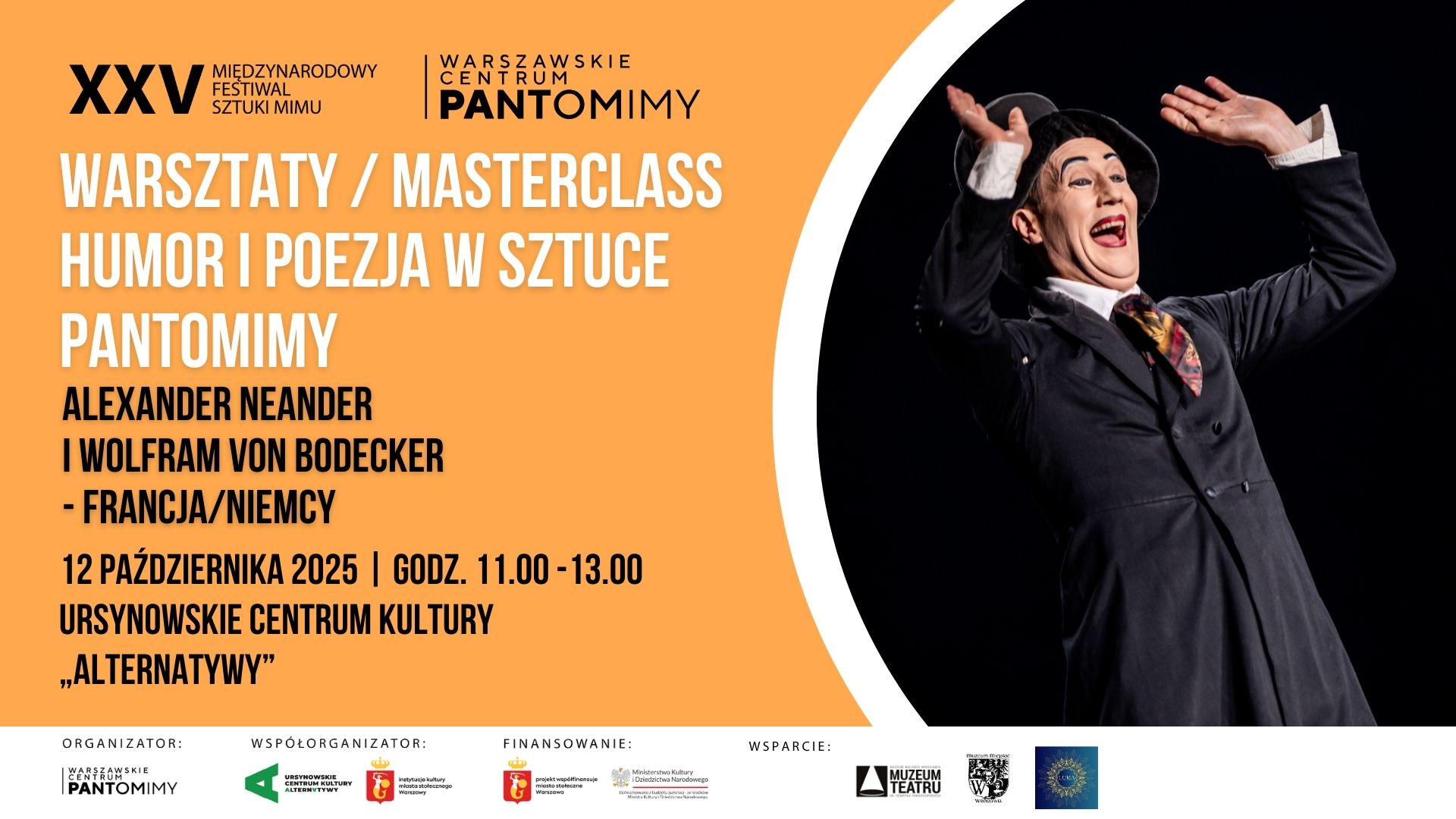 🕢 19:30 – Wieczór Współczesnej Pantomimy Artyści z Francji, Polski, Niemiec, Hiszpanii, Włoch i Kolumbii – Sala Szekspir